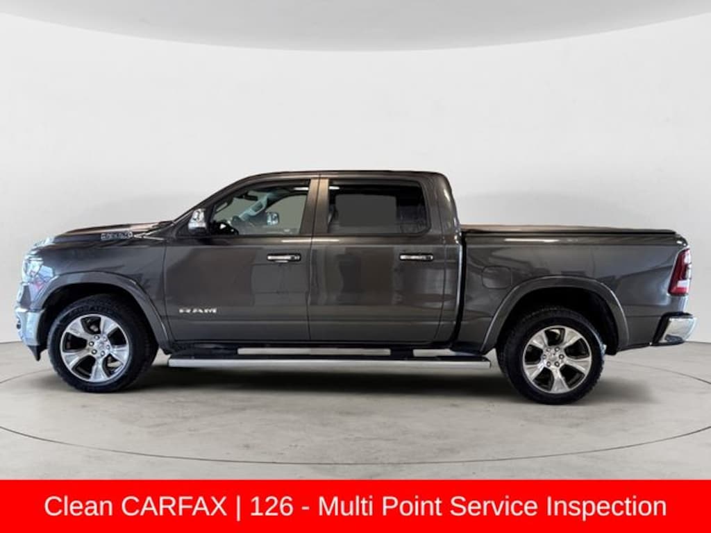 Clean CARFAX, 126 - Multi Point Service Inspection, Fresh Oil Change & Oil Filter, 2nd Row In Floor Storage Bins, Apple CarPlay/Android Auto, Auto High Beam Headlamp Control, Blind Spot & Cross Path Detection, Heated Front Seats, Heated Steering Wheel, Laramie Level I Equipment Group, Leather Trim 40/20/40 Bench Seat, Memory seat, ParkSense Front/Rear Park Assist w/Stop, Power driver seat, Power passenger seat, Rain Sensitive Windshield Wipers, Remote keyless entry, Remote Tailgate Release, Ventilated Front Seats, Wheel to Wheel Side Steps, Wheels: 20" x 9" Premium Paint/Polished.